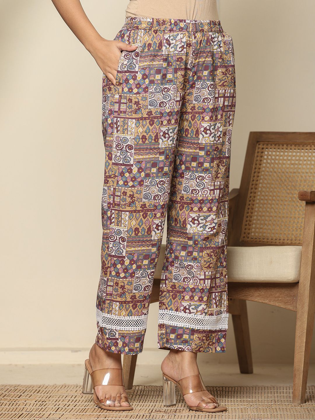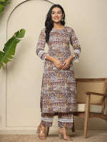 Yufta Beige Cotton Geometric Print Straight Kurta Pant Dupatta Set Product Details  Beige Geometric Print Straight kurta Trouser Dupatta Set,Kurta...