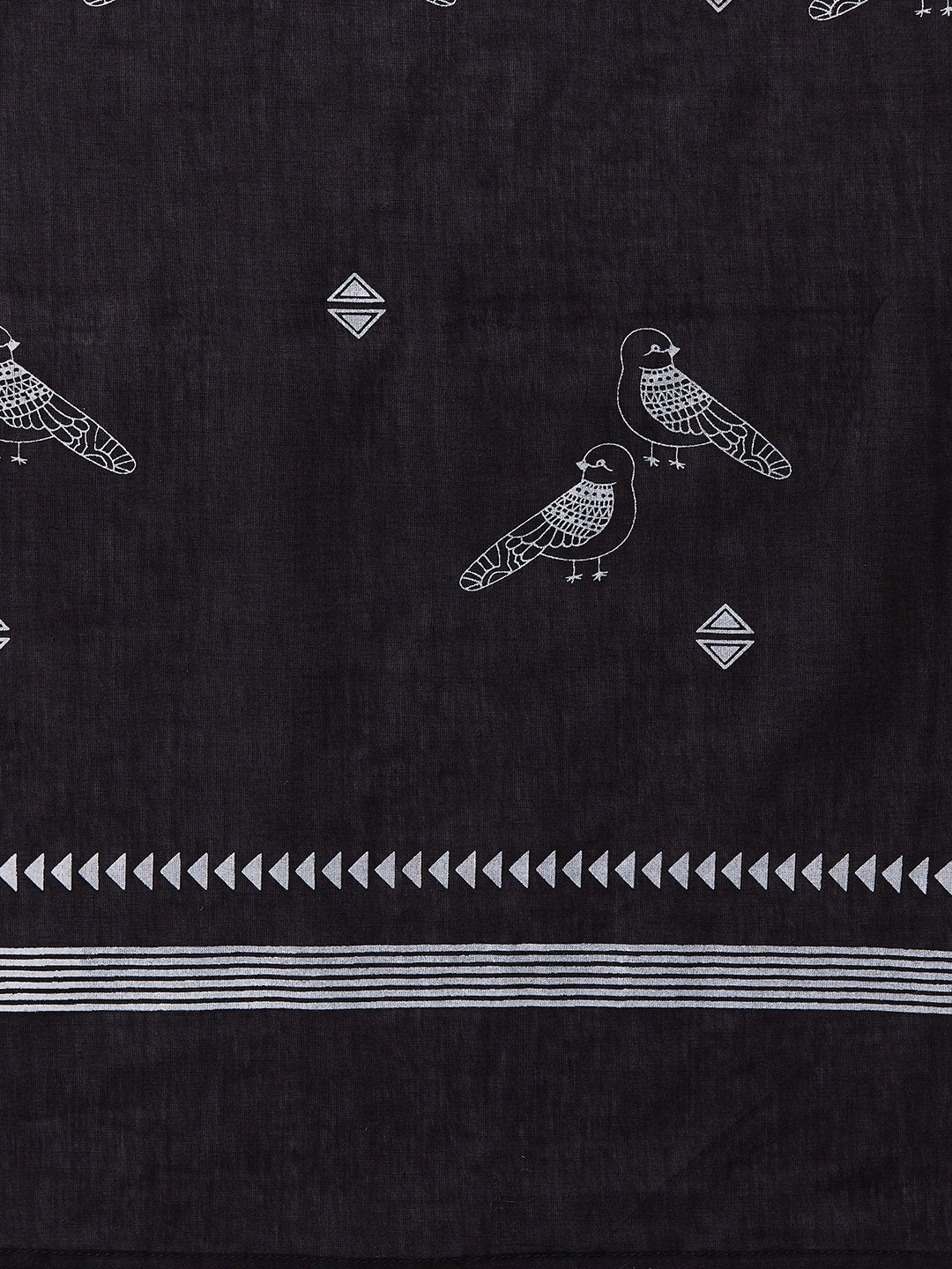 InWeave Black Bird Print Cotton Dupattas - Distacart
