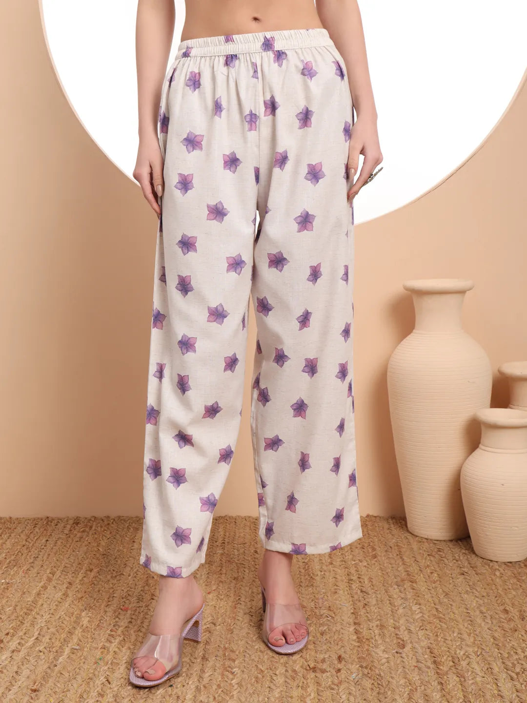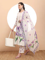 White printed Kurta with Trousers with dupatta