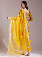 Yufta Mustard Cotton Gotta Work Kurta Set With Pant & Dupatta - S