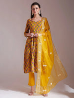 Yufta Mustard Cotton Gotta Work Kurta Set With Pant & Dupatta