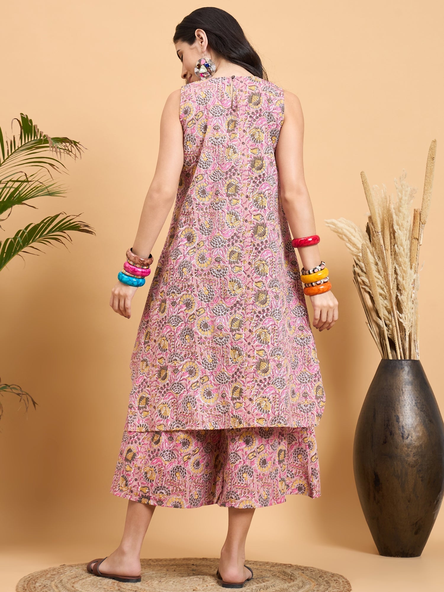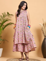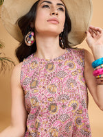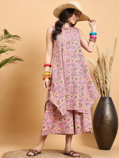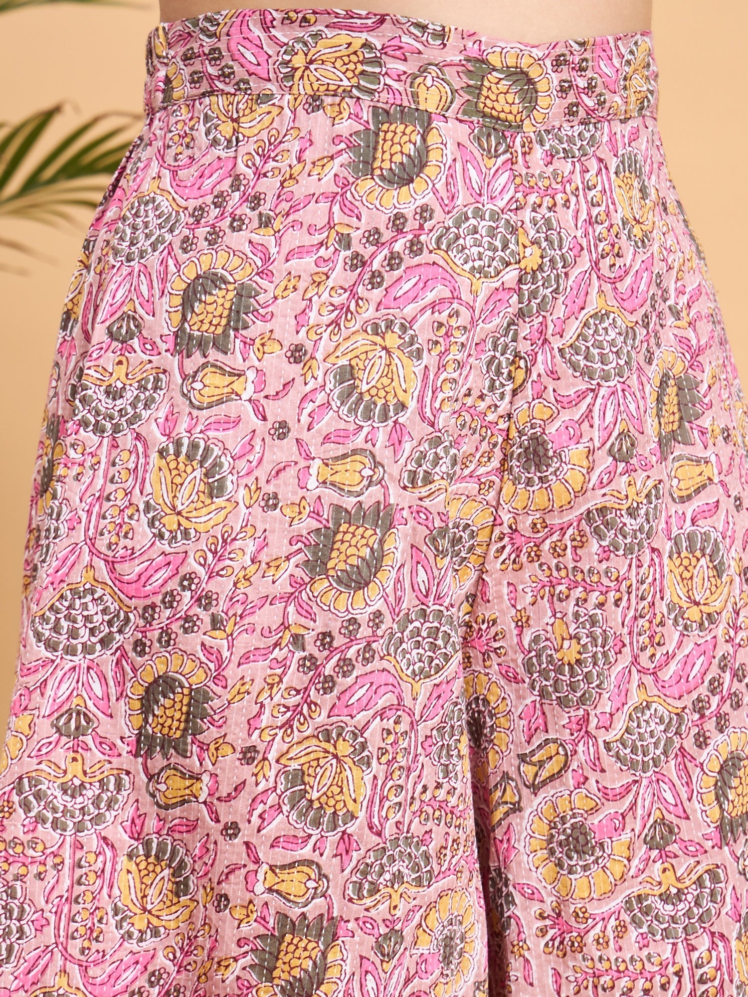 InWeave Pastel Pink Kantha Floral Jaal Short Palazzo Set