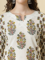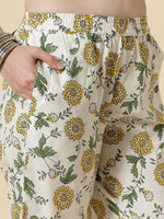 Yufta White And Yellow Floral Print Cotton Sequins Work Kurta Set With Pant & Dupatta Product Details  White, yellow and green printed kurta w...