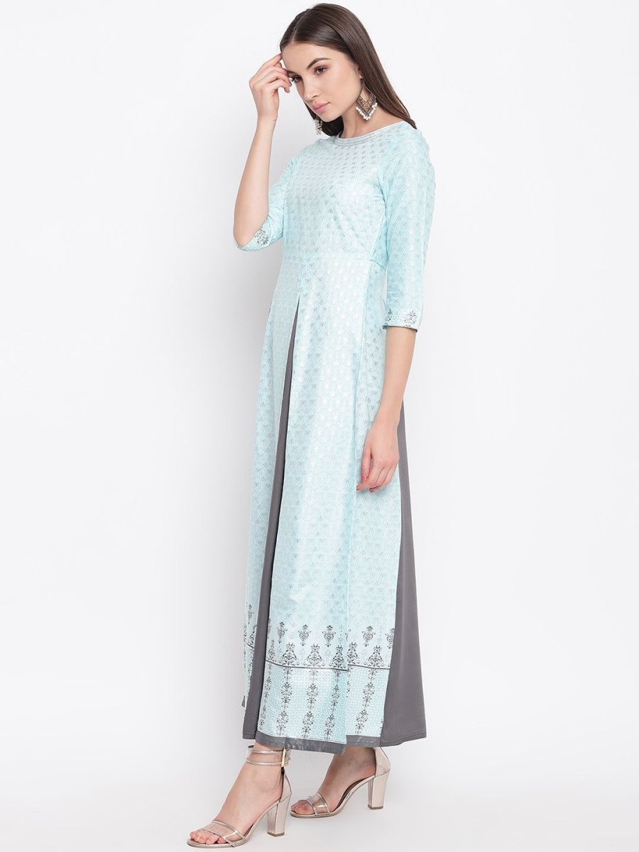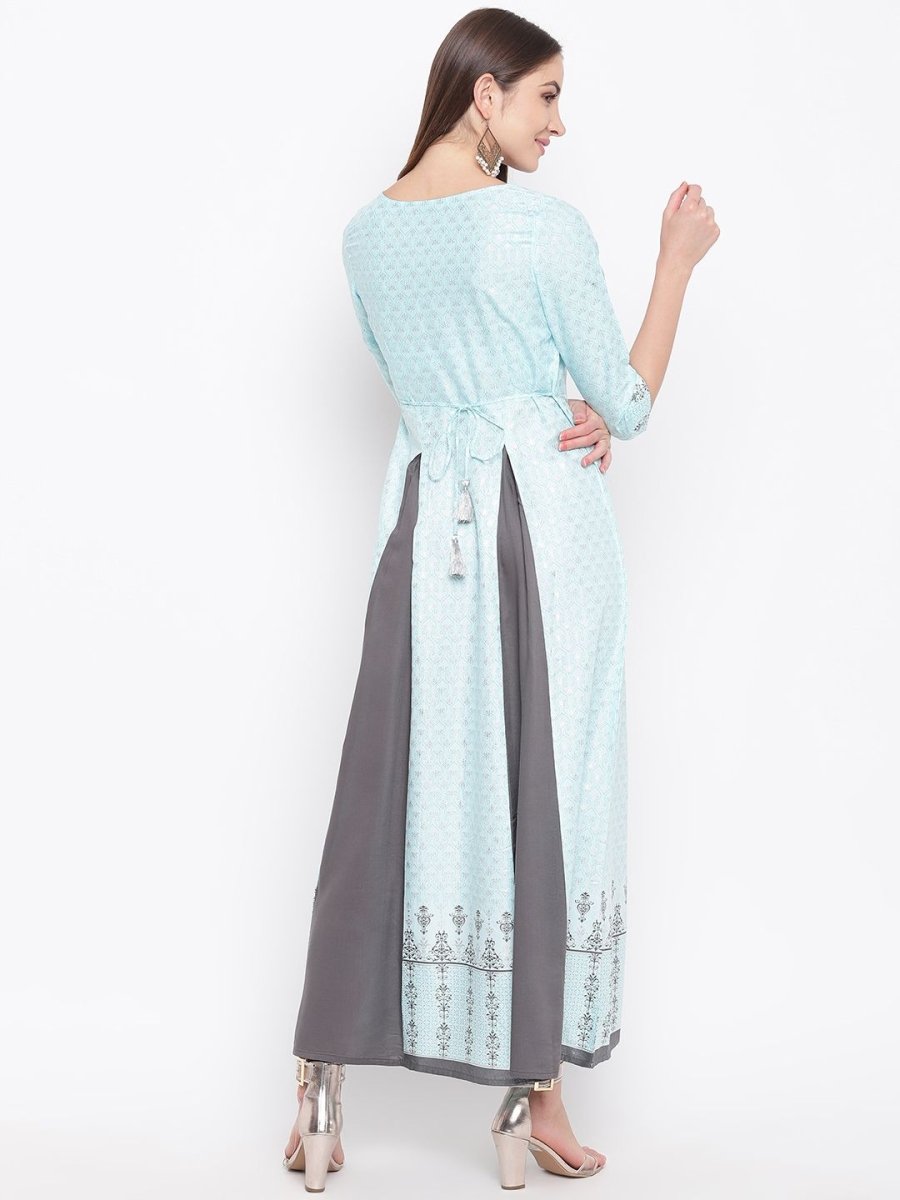 AURELIA Women Blue & Charcoal Grey Printed Layered Maxi Dress - Distacart