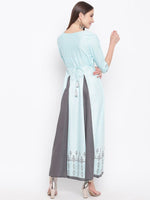 AURELIA Women Blue & Charcoal Grey Printed Layered Maxi Dress