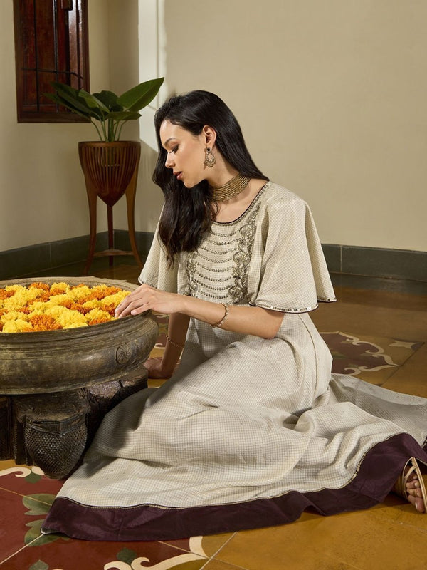 AURELIA Women Off-White & Golden Checked A-Line Dress - XS