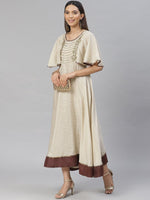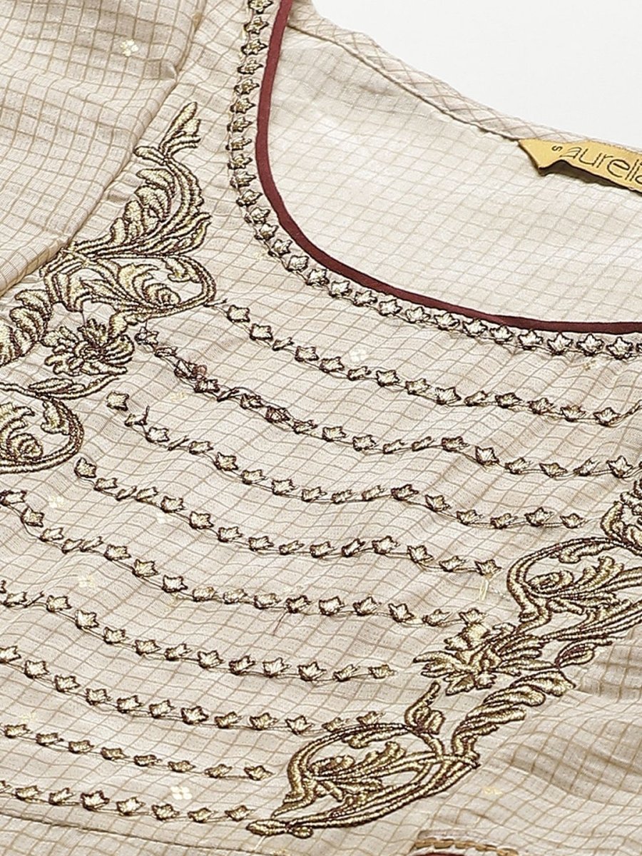 AURELIA Women Off-White & Golden Checked A-Line Dress