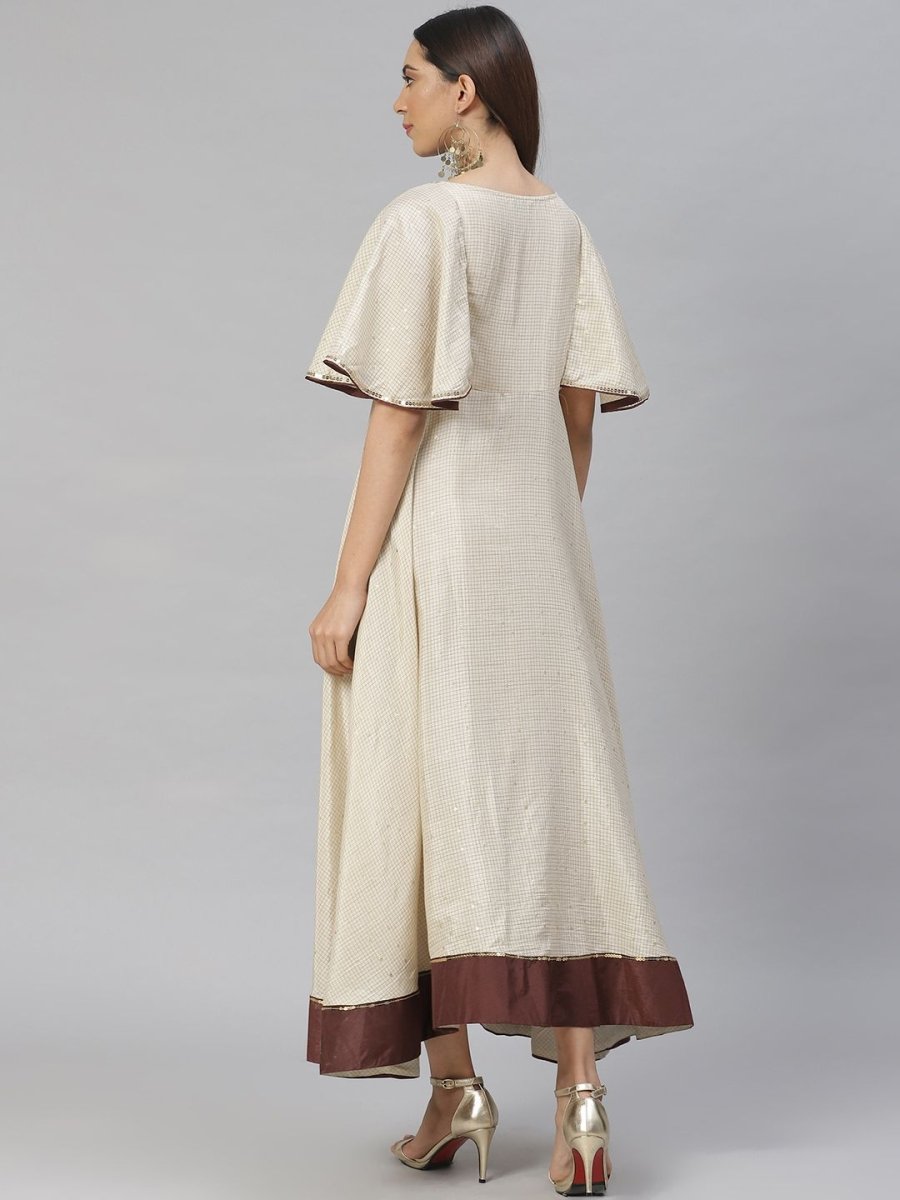 AURELIA Women Off-White & Golden Checked A-Line Dress - Distacart