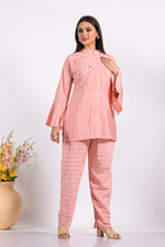 Morchari Co Ord Set With Hand Embroidery - PeachAbout the Product: Pack Contains: 1 Top 1 Pant Length of Kurta: 29 Sleeve type: Long Sleeves Fa...