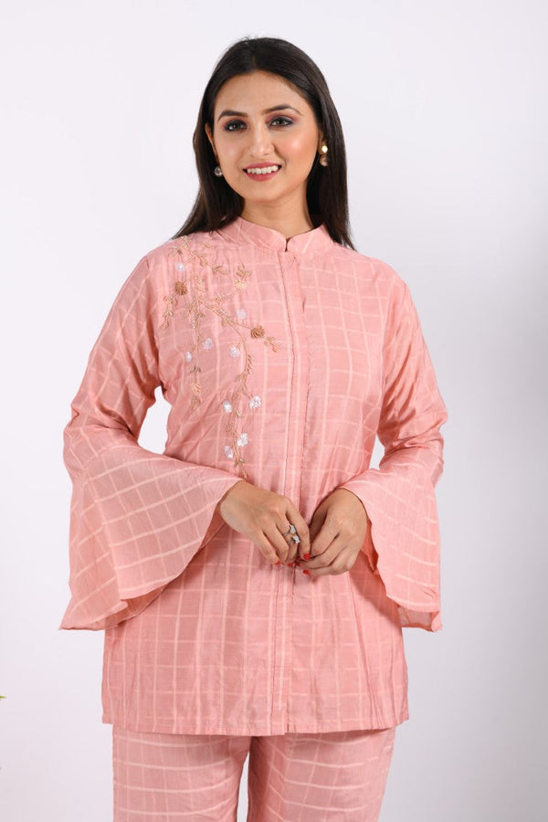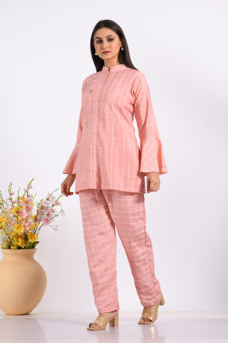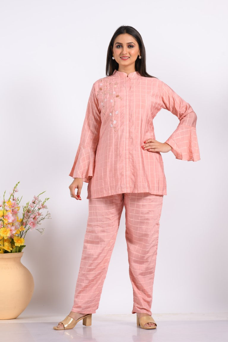Morchari Co Ord Set With Hand Embroidery - Peach - Distacart