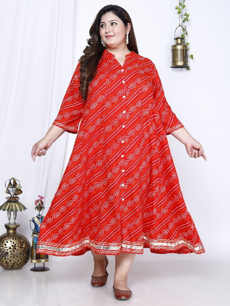 Swasti Bandhani Printed A-Line Maxi Ethnic Dress - 3XL