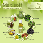 • Maxisoft Anti-Lice Herbal Oil is formulated as a completely safe, natural alternative to chemical-based anti-lice products. Maxisoft Anti-Lice Herbal Oil is a completely natural lice-repellent oil made from a unique blend of Ayurvedic herbs which provides systematic relief from lice & nits, without disturbing normal hair growth.