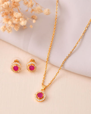 Jewels Nest Gold-Plated Round Pink Stone Pendant Necklace Set With Stud Earrings For Women