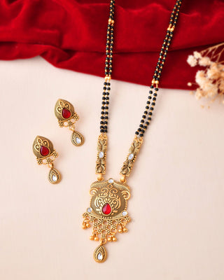 Jewels Nest Antique Gold-Plated Red Stone Temple Mangalsutra Set For Women