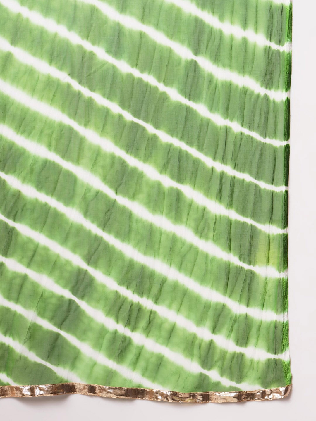 Mustard yellow and green embroidered Kurta with Trousers & dupatta