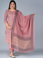 Kalini Floral Printed Pure Cotton Straight Kurta with Trousers & Dupatta - M