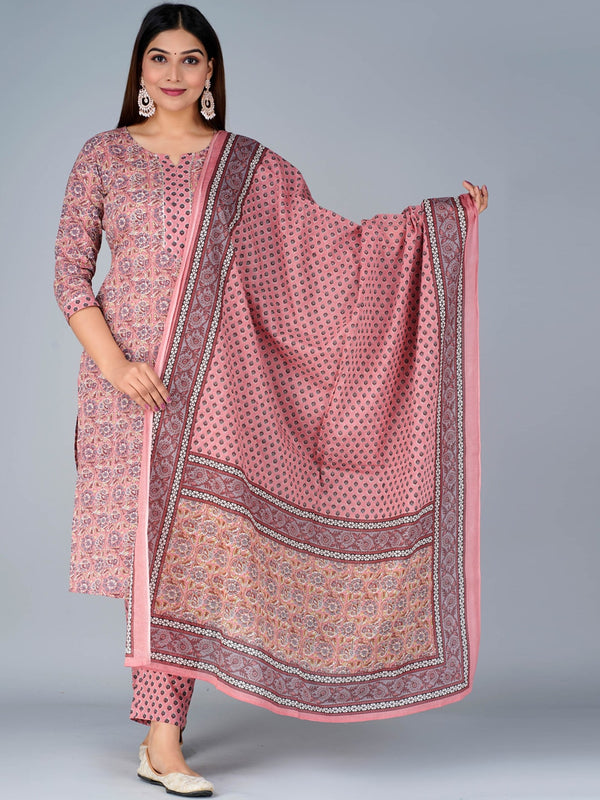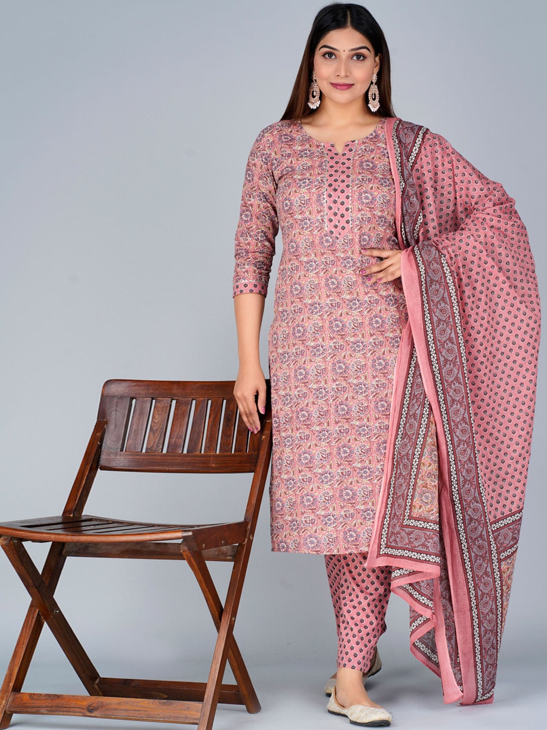 Kalini Floral Printed Pure Cotton Straight Kurta with Trousers & Dupatta