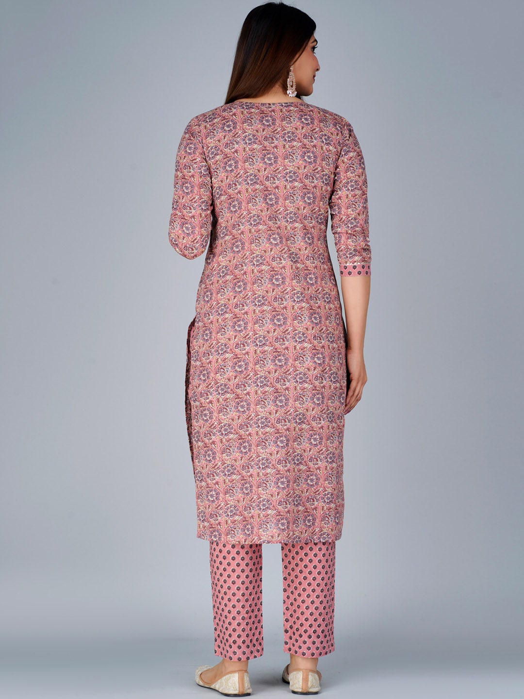 Kalini Floral Printed Pure Cotton Straight Kurta with Trousers & Dupatta - Distacart