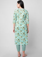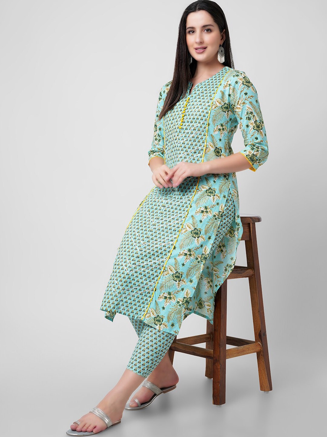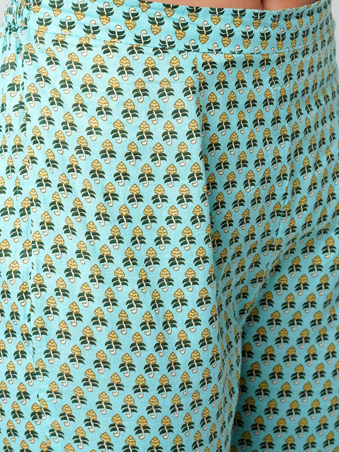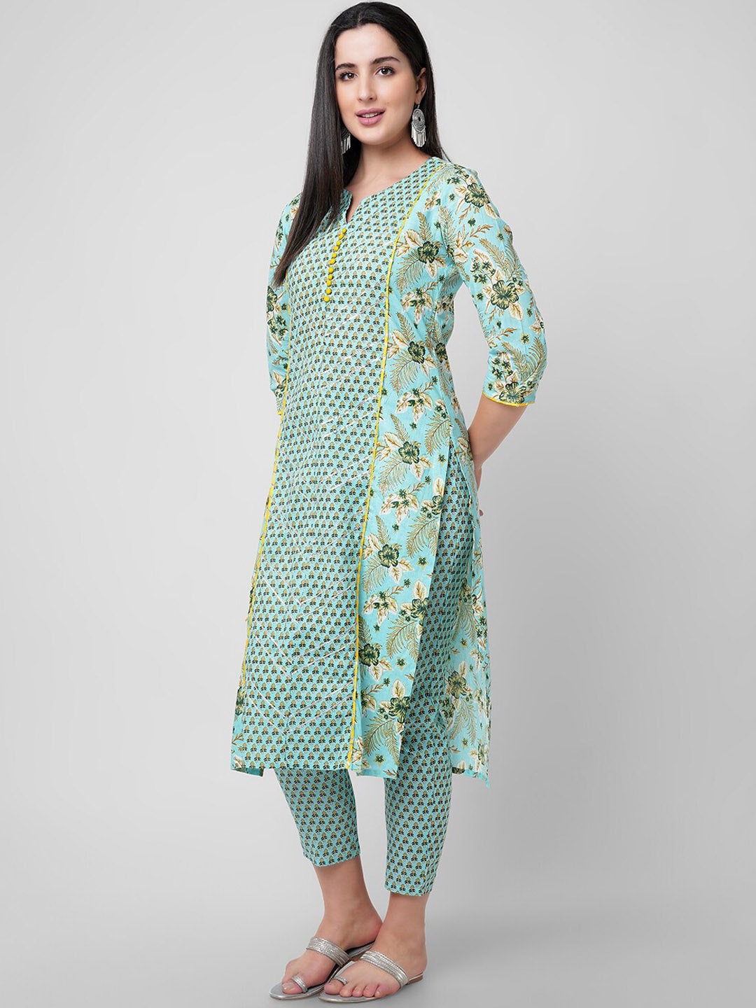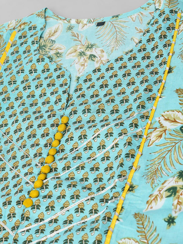 Kalini Floral Printed Regular Gotta Patti Pure Cotton Kurta with Trousers Product Details Sea green printed Kurta with TrousersKurta design: F...