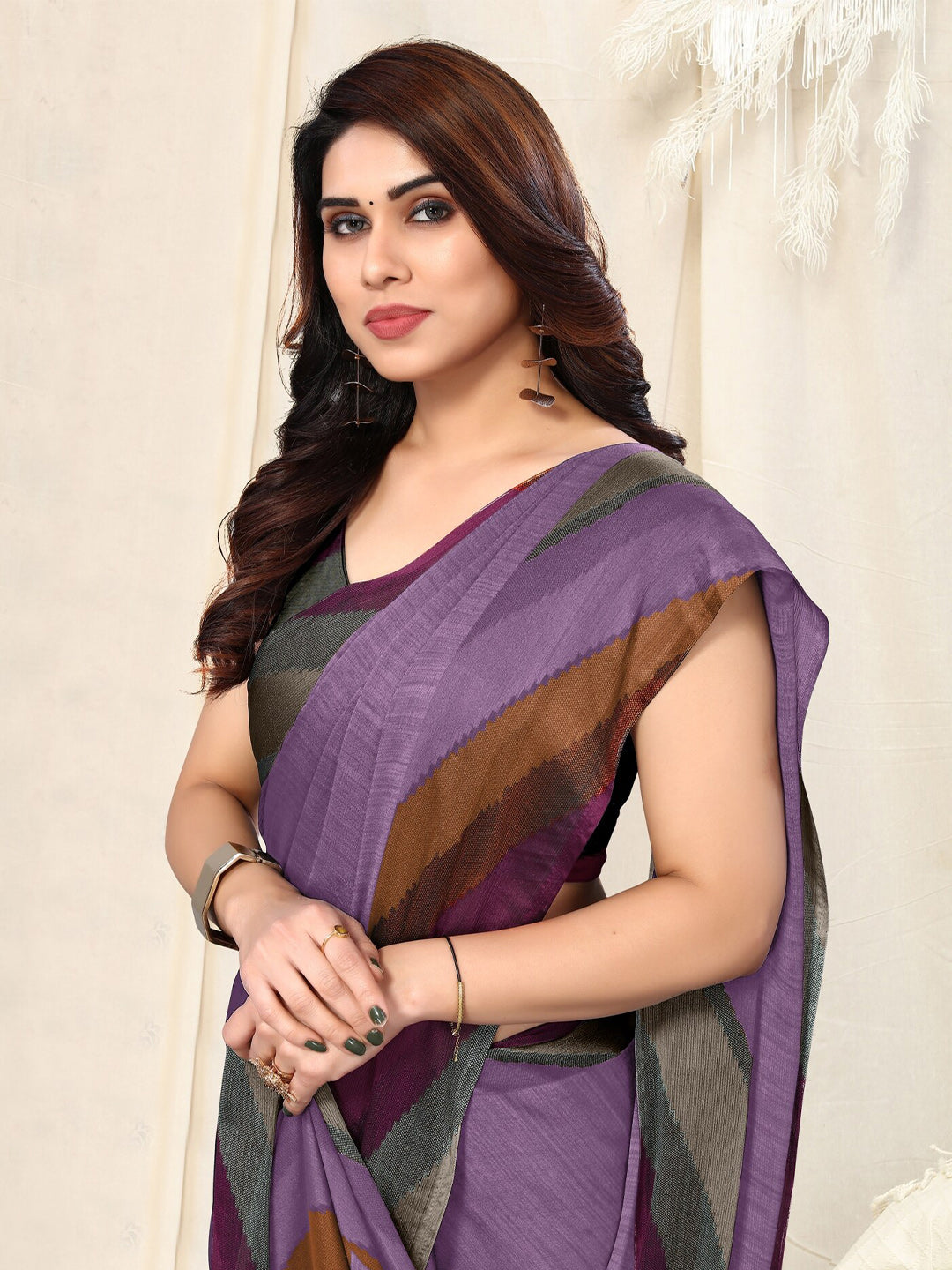 Kalini Striped Poly Chiffon Saree Product Details Design Details Violet and maroon saree Striped saree with printed border  The saree comes w...