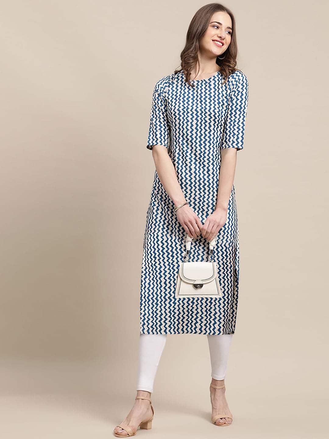 Kalini Women Pack of 2 Geometric Printed Crepe Kurtas Product Details Pack of 2 Geometric printed Round neck Short, regular sleeves Straight sh...
