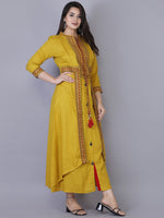 Kalini Women Yellow Ethnic Motifs Embroidered & Mirror Work Layered Regular Fit Kurta - S