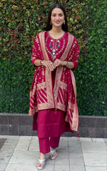Lorenvalley Fashion Maroon Roman Silk Hand Work Kurta Pant with Dupatta