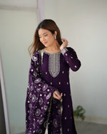 Lorenvalley Purple Rangoli Silk Embroidery Sequence and Jari Work Kurta Trousers with Dupatta Set