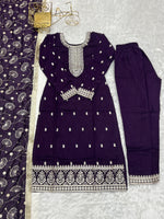 Lorenvalley Purple Rangoli Silk Embroidery Sequence and Jari Work Kurta Trousers with Dupatta Set - Distacart