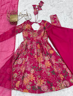 Lorenvalley Women Pure Soft Roman silk Chanderi Discharge Print Fabric Kediya Kurta Palazzo with Dupatta Set - RanipinkKediya  Kurta Fabric: - Pure...