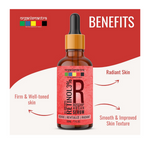PERFECT ANTI-AGING SERUM - Antioxidants are known to slow the formation of wrinkles and fine lines, the first signs of aging skin by neutralizing the free radicals. Retinol serum is known to rejuvenate dull skin by minimizing aging signs