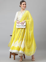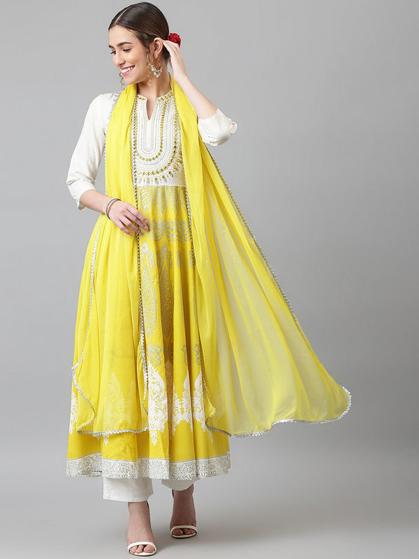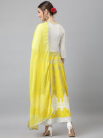 Yellow & off white embroidered Kurta with Palazzos & dupatta