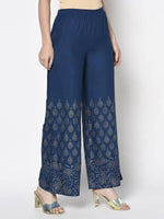 Aniyah Rayon Blue Color Gold Print Flared slip-on Palazzo (AN-209K):