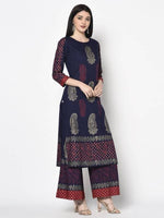 Aniyah Rayon Navy Blue Color Block Print Straight Kurta Palazzo Set (AN-179K) - L
