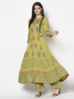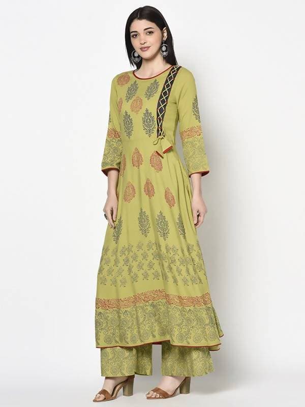 Aniyah Rayon Parrot Green Color Block Print Anarkali Palazzo Set (AN-194K) - S