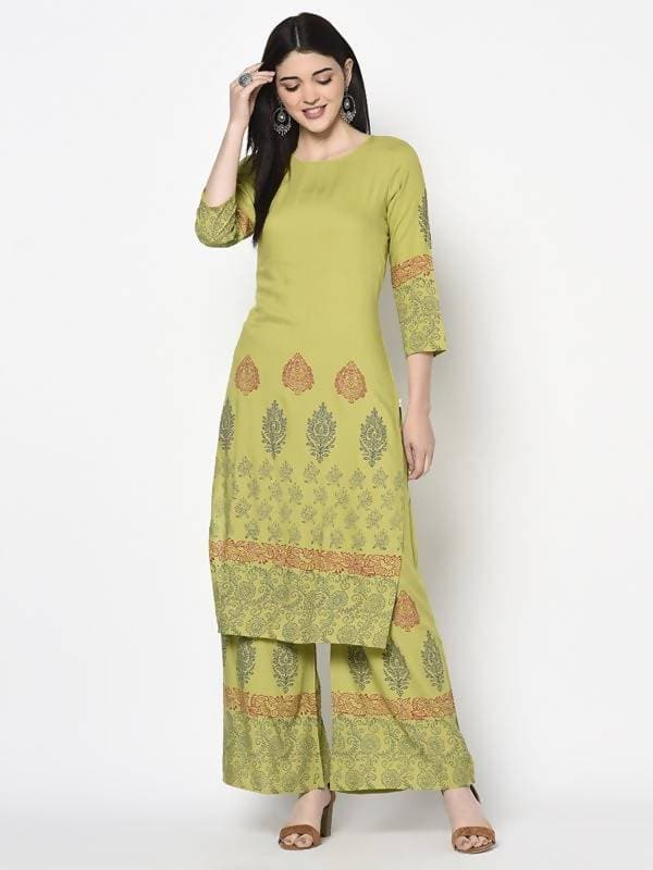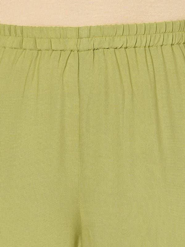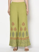 Aniyah Rayon Parrot Green Color Block Print Flared Slip-on Palazzo (AN-196K):