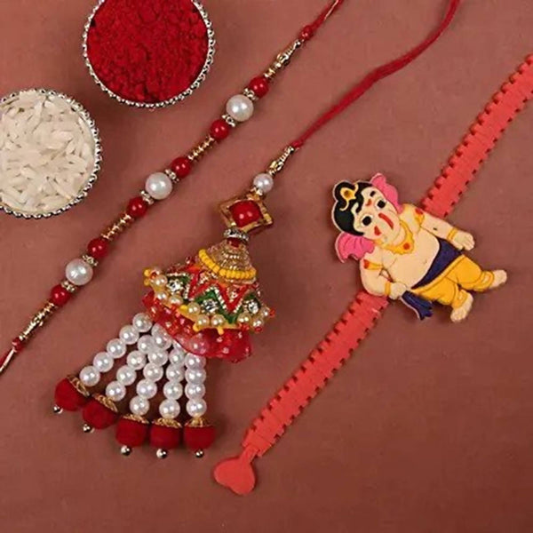 Bal Ganesha Rakhi With Pearl Lumba Set - Combo Pack