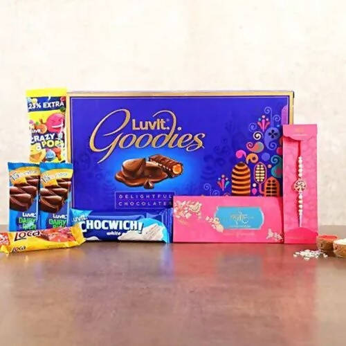 Evil Eye Rakhi & LuvIt Goodies Chocolate Box: Combo