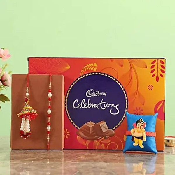 Pearl Family Rakhi Set & Celebrations: Combo PackProduct Details: One Lumba Rakhi One Pearl Rakhi One Bal Ganesha Rakhi One Cadbury Celebration...