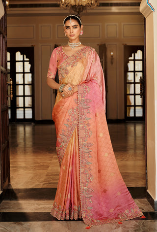 Monjolika Fashion Silk Blend Saree In Peach & Rose Pink With Intricate Meenakari Zari Detailing
