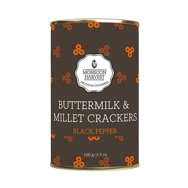 Monsoon Harvest Buttermilk & Millet Crackers Black PepperKey Ingredients: ‎Whole wheat flour Barnyard millet flour Kodo millet flour Foxtail mi...