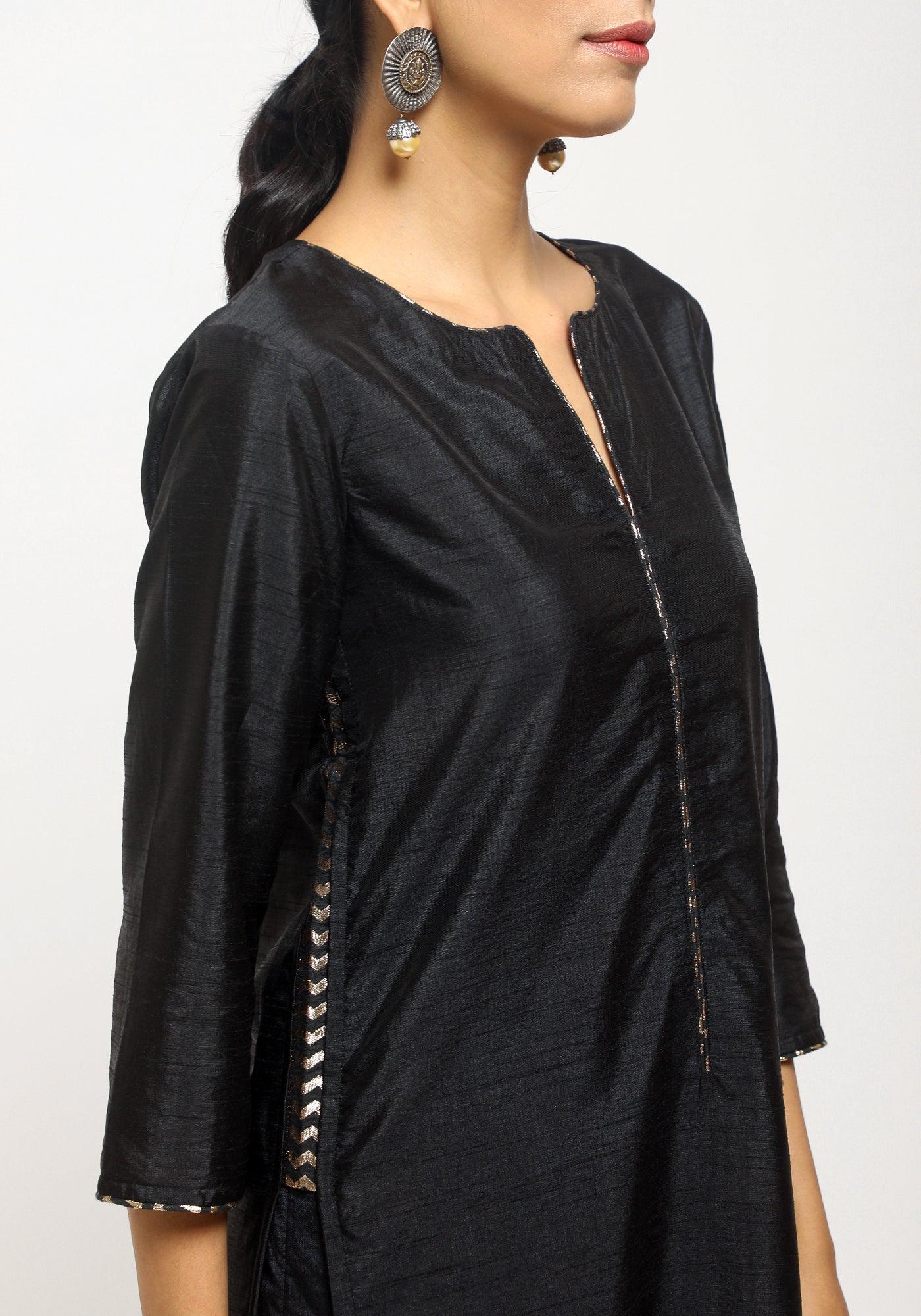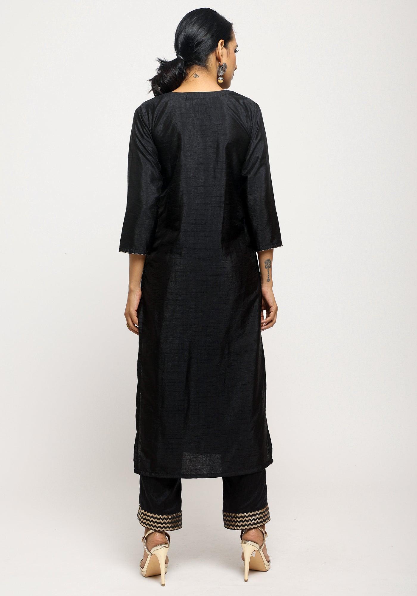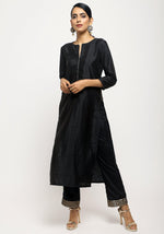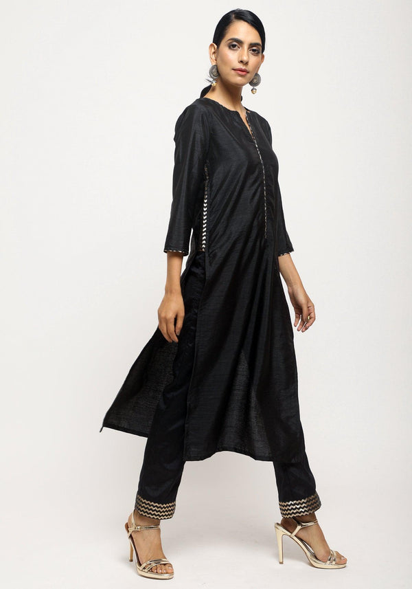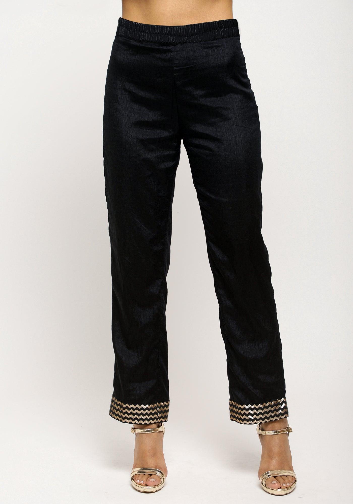 trueBrowns Black Foil High Slit- Foil Pant - 2XS