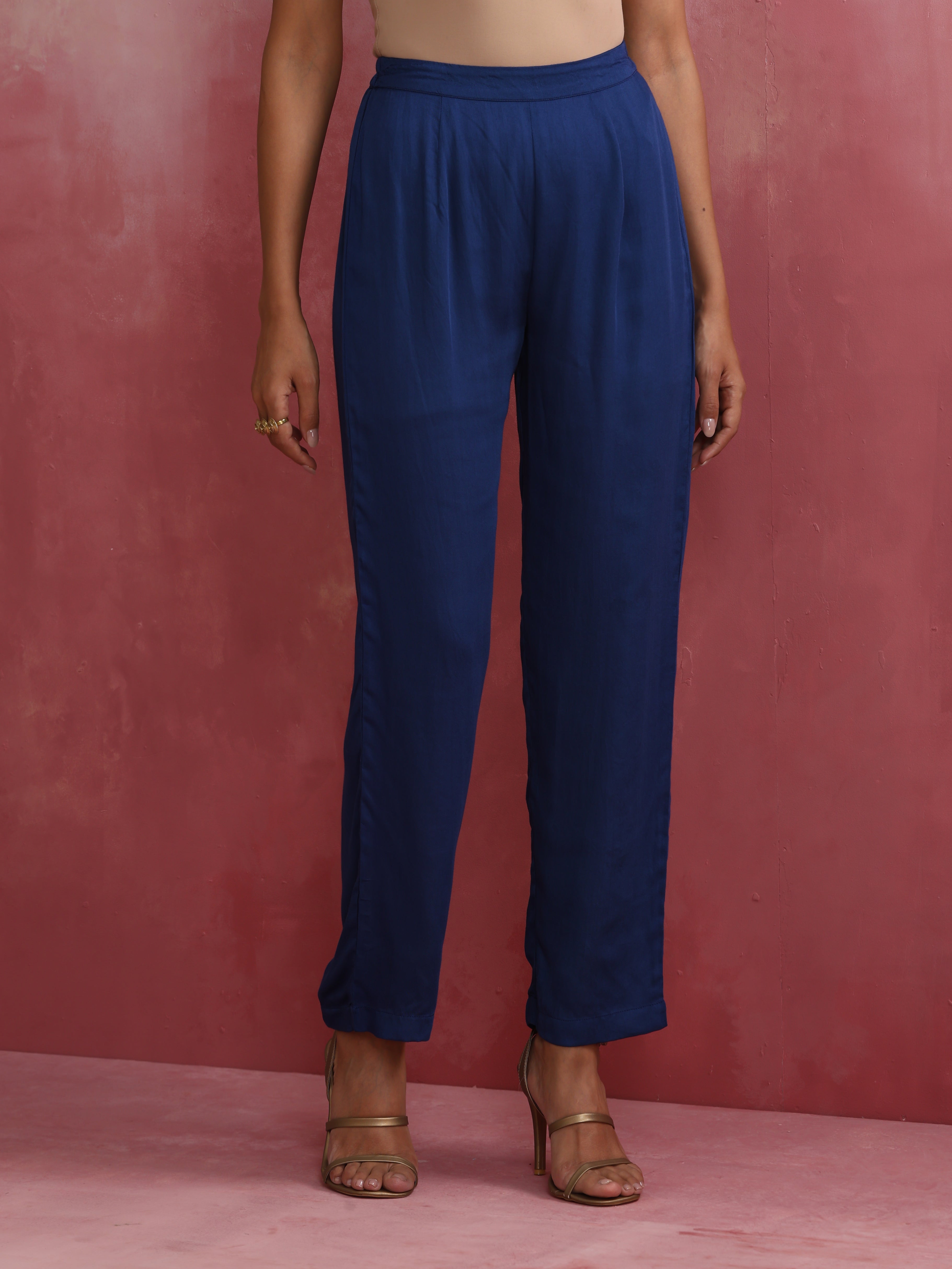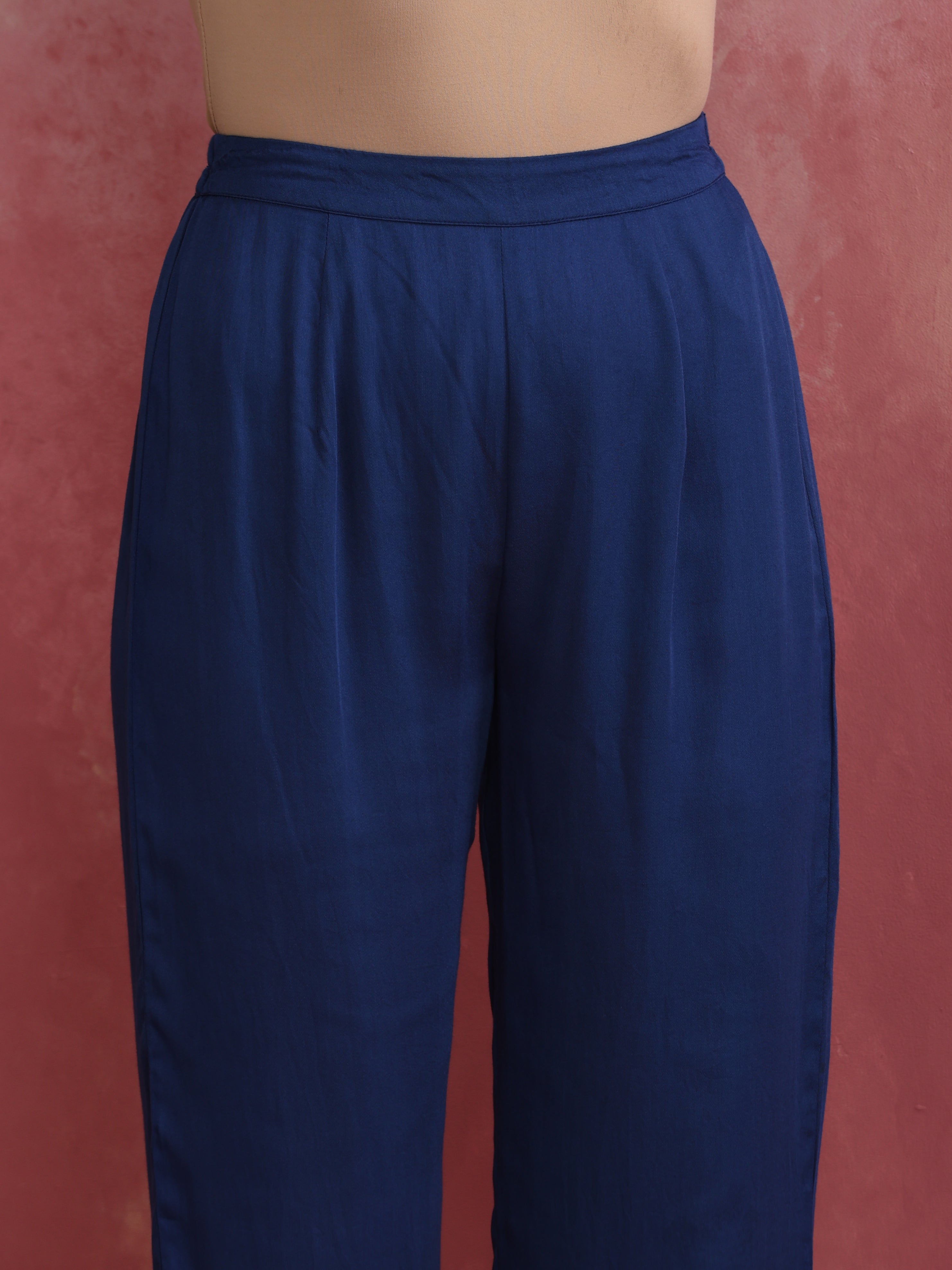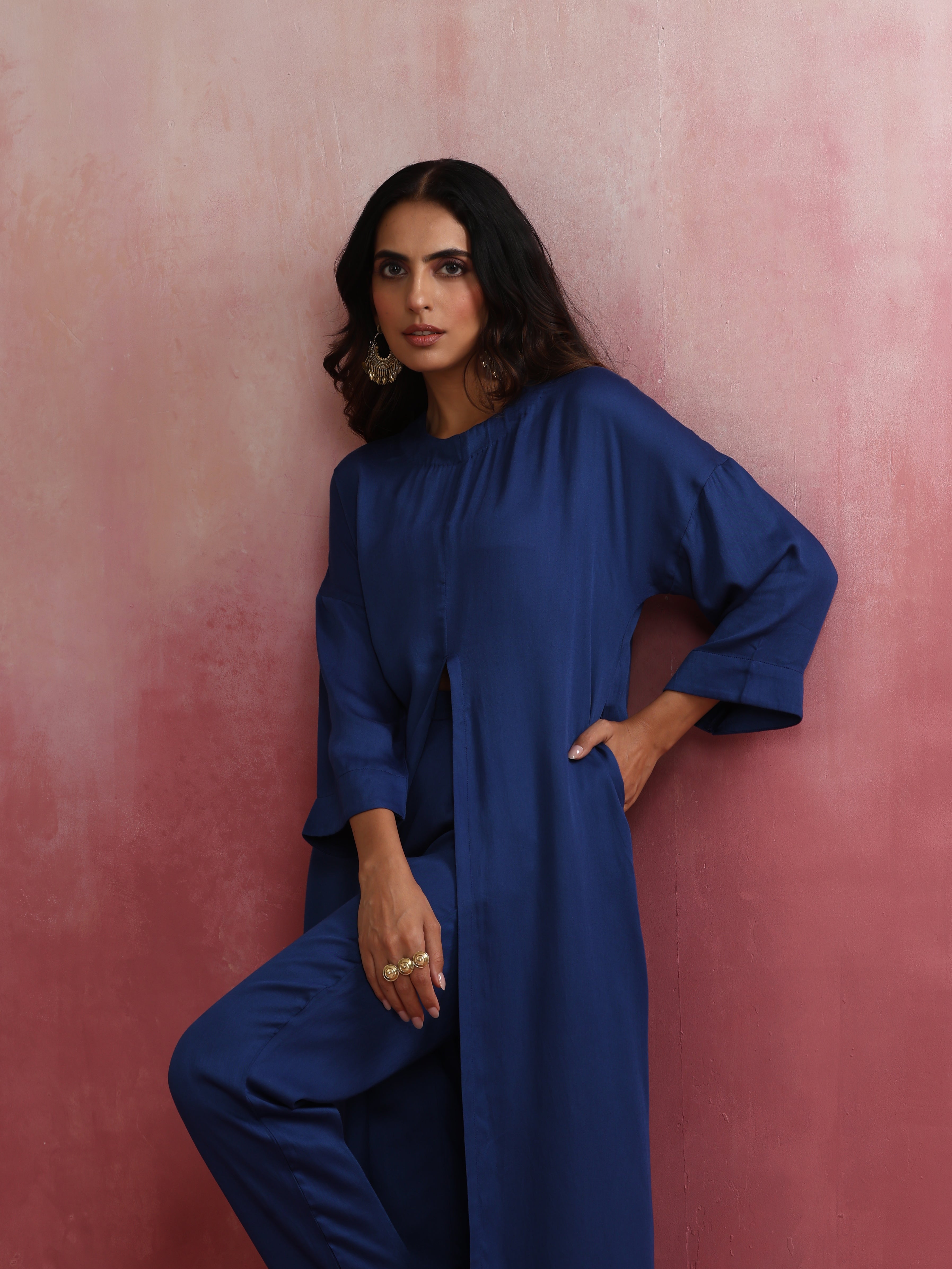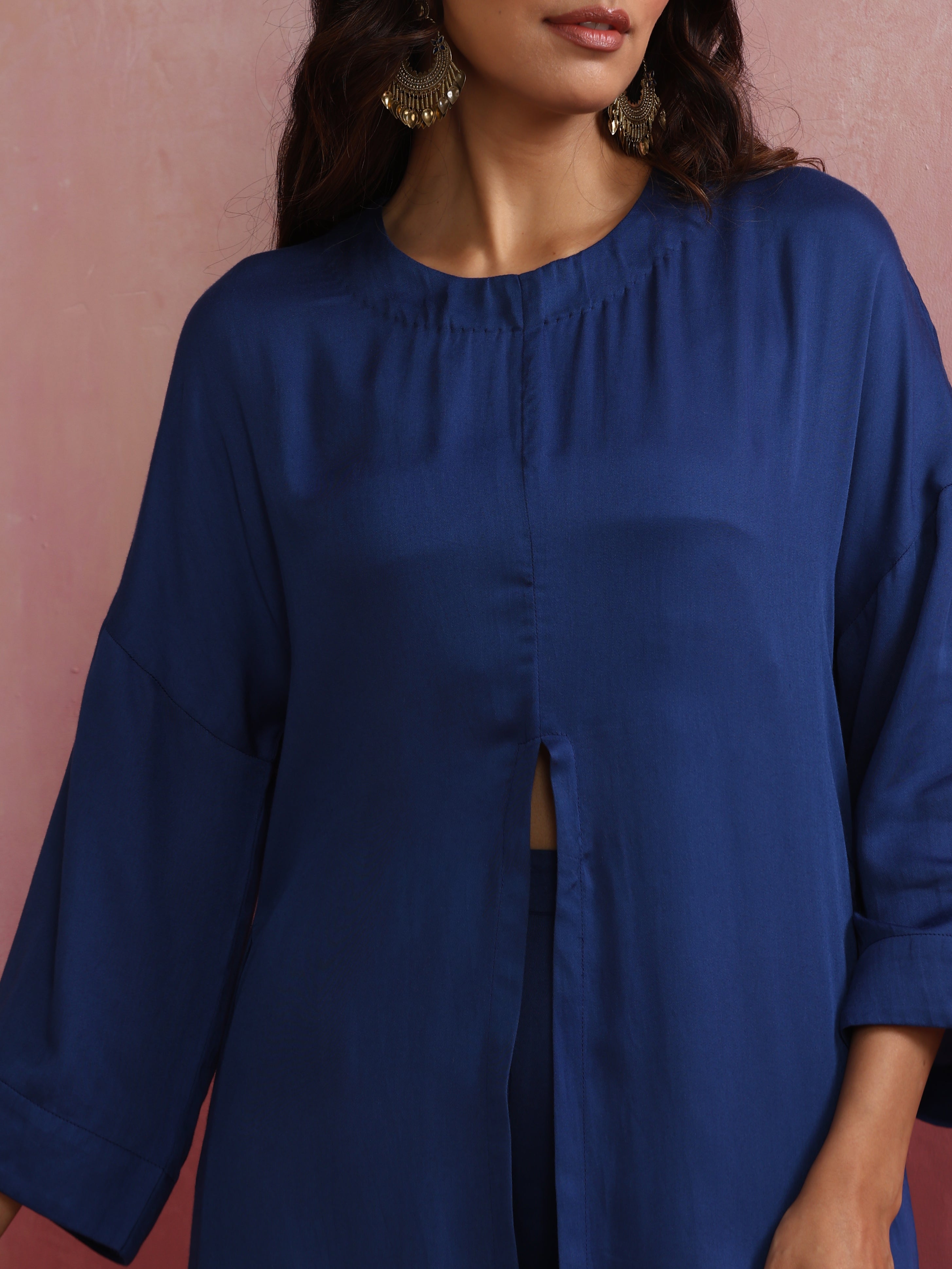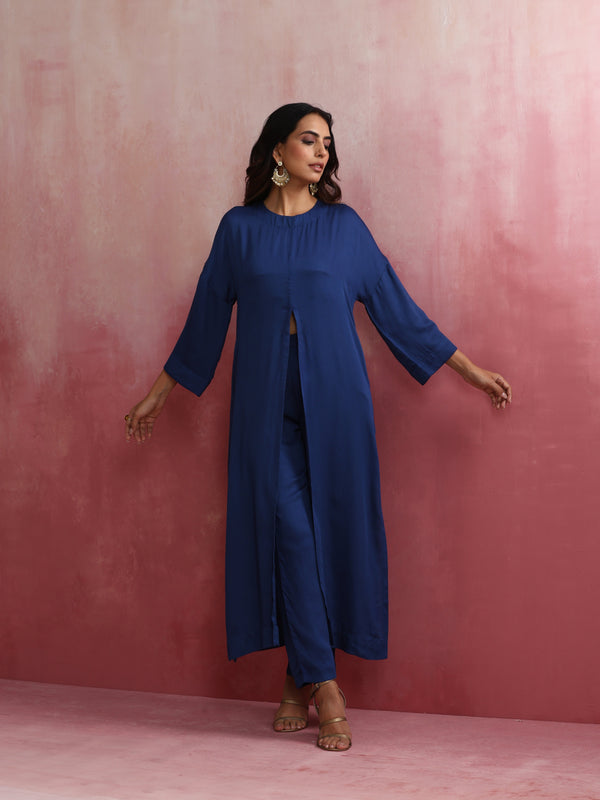 trueBrowns Blue Modal Front Slit Kurta set - XS