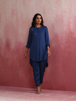 trueBrowns Blue Modal High Low Kurta Co-ord Set - XS