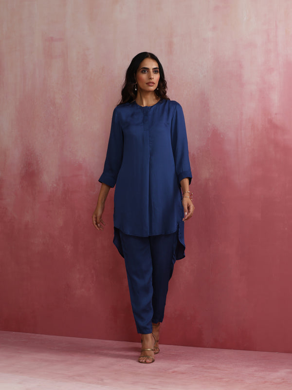 trueBrowns Blue Modal High Low Kurta Co-ord Set