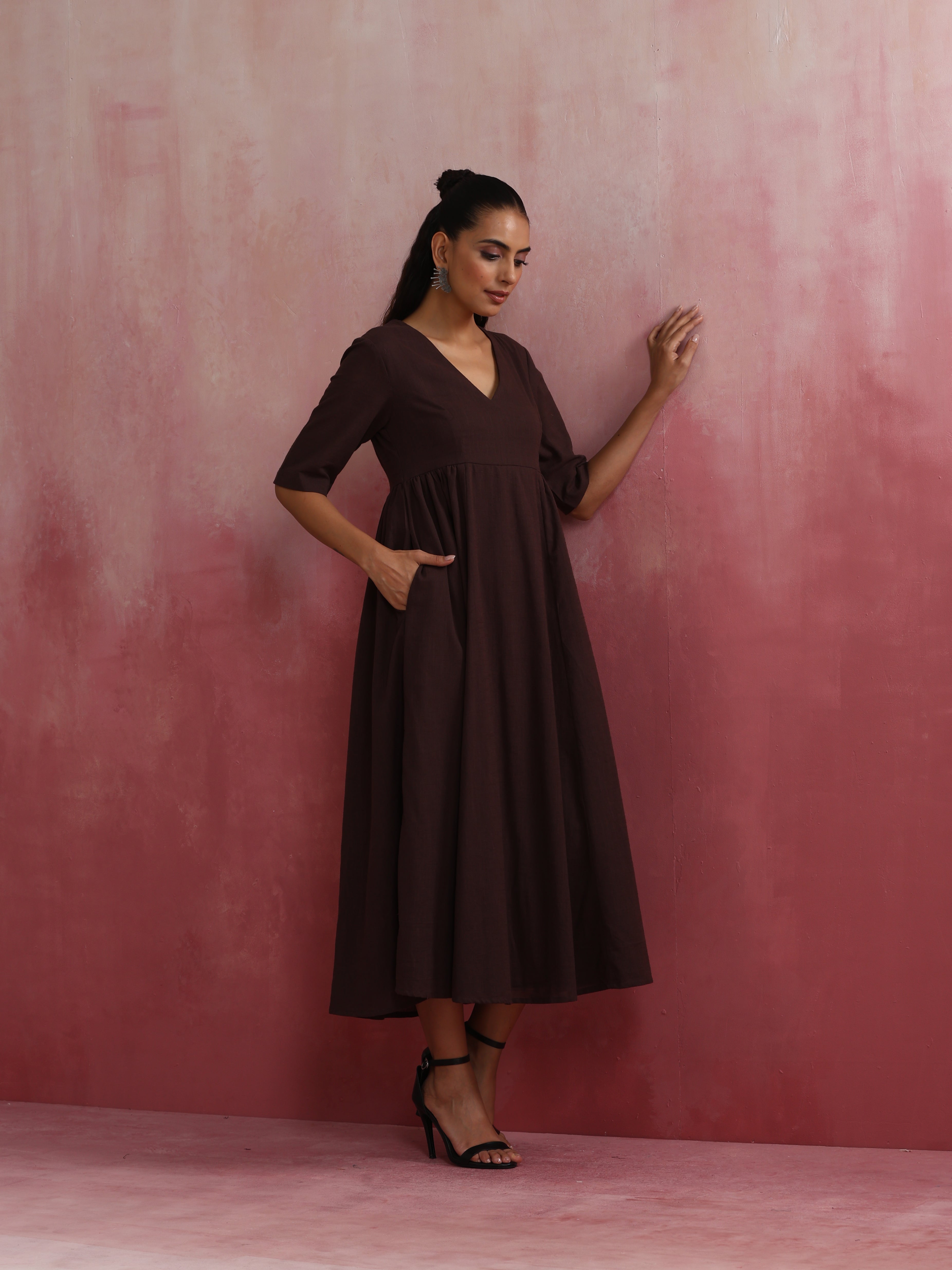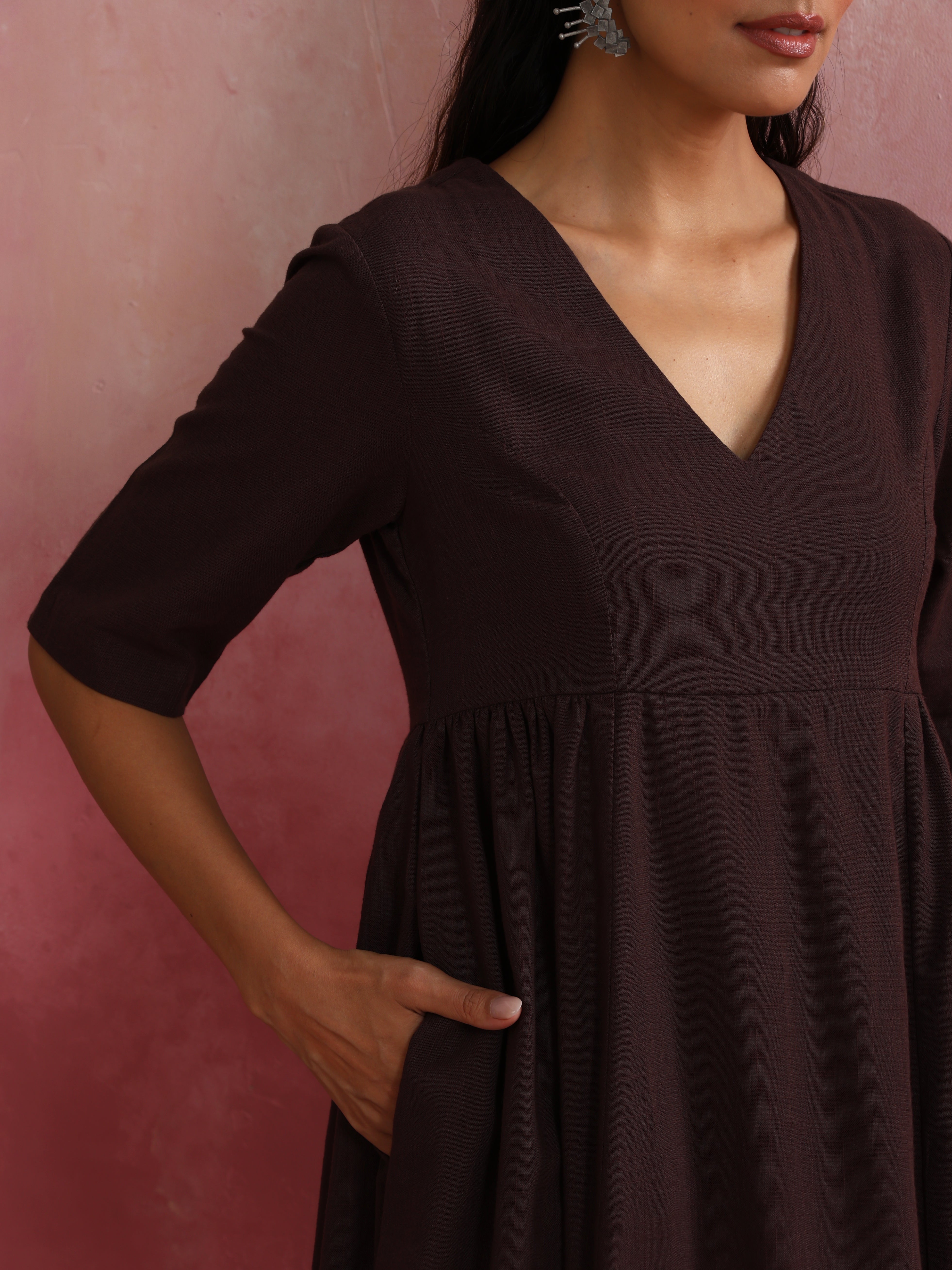 Elevate your style with this cola cotton dobby dress. It's an ideal blend of elegance and comfort.