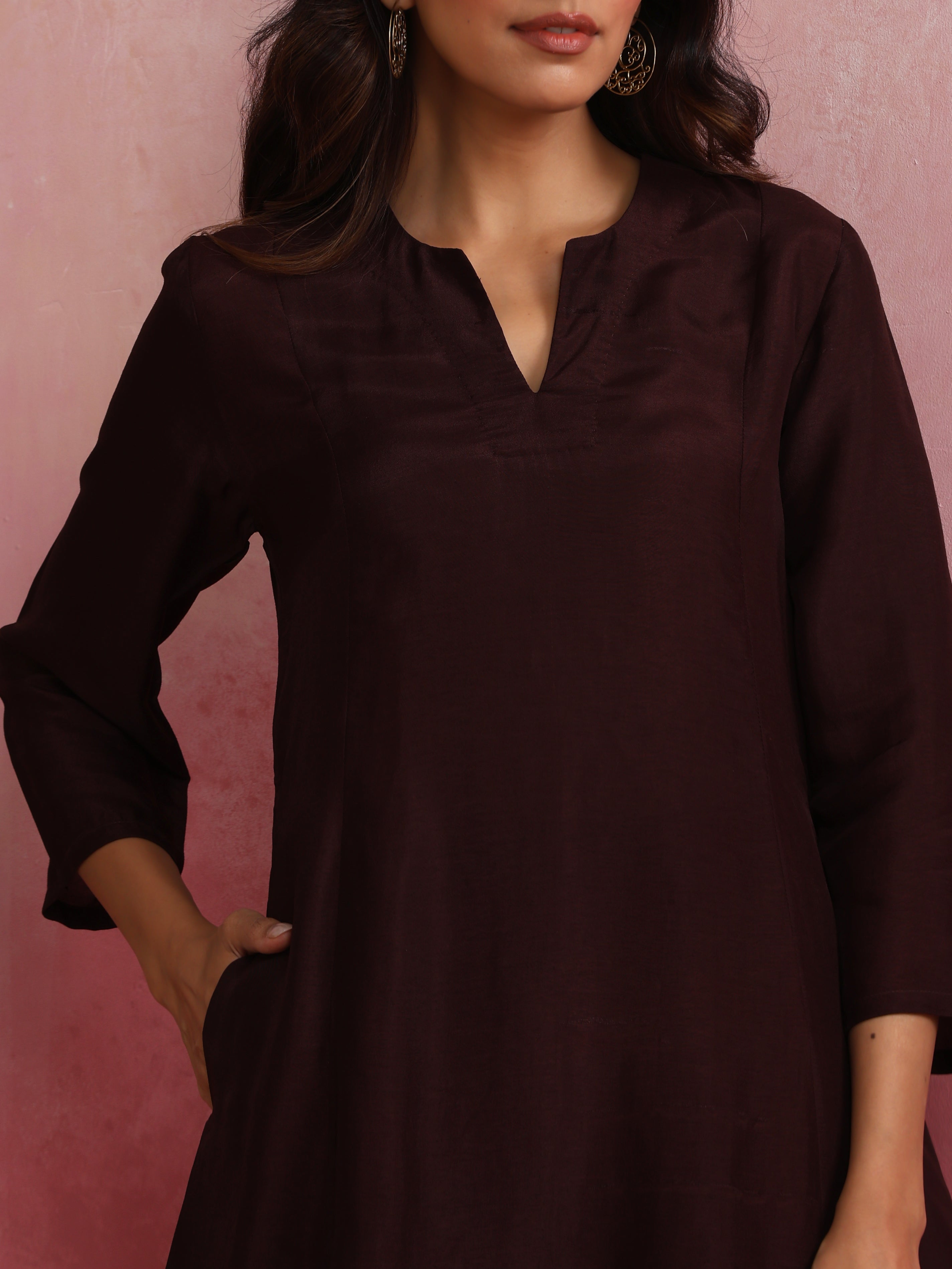 trueBrowns Cola Viscose Silk Kurta Co-ord SetDescription Elevate your style with this cola viscose silk kurta with 3/4th sleeves. Paired perfectly ...