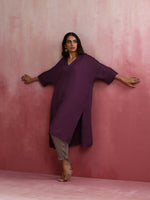 trueBrowns Purple Modal Kimono Kurta Set - XS