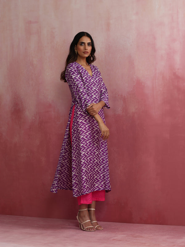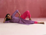 trueBrowns Purple Muslin Silk Printed Kurta Set