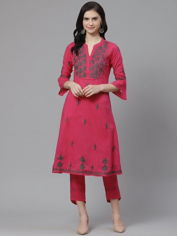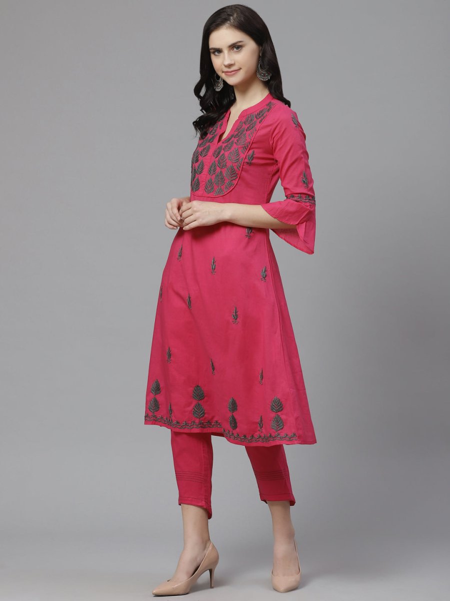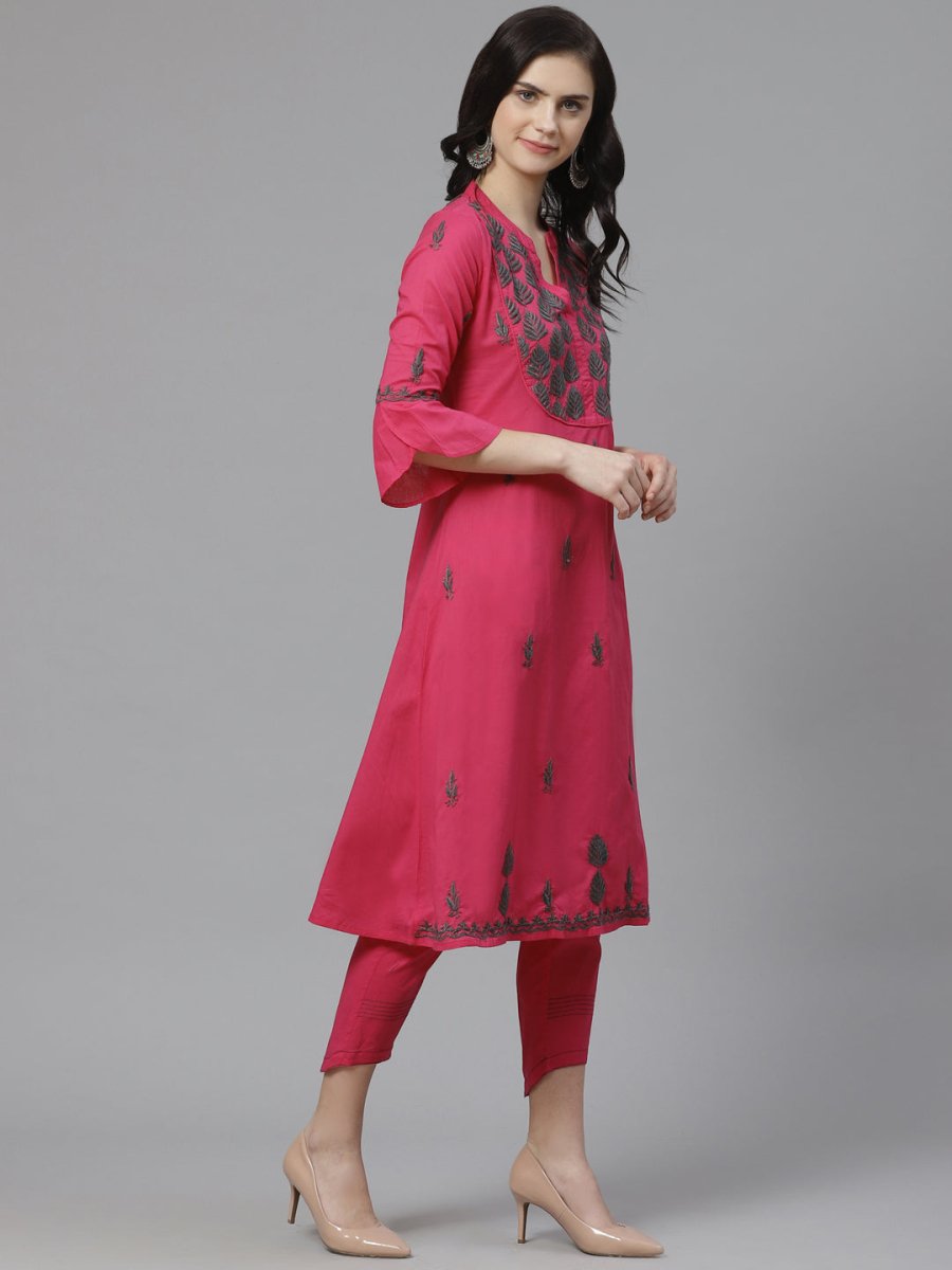 Pink and charcoal grey chikankari embroidered kurta with trousers